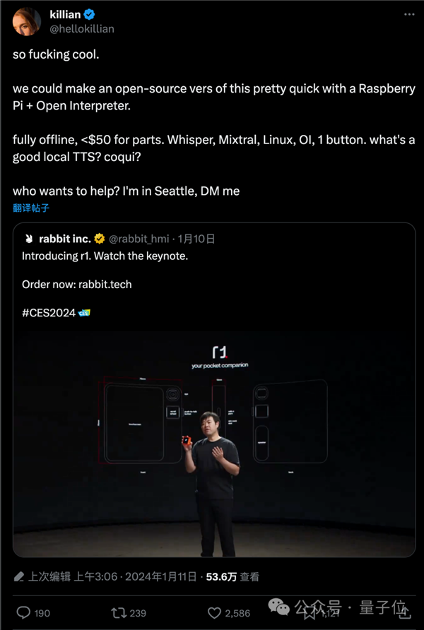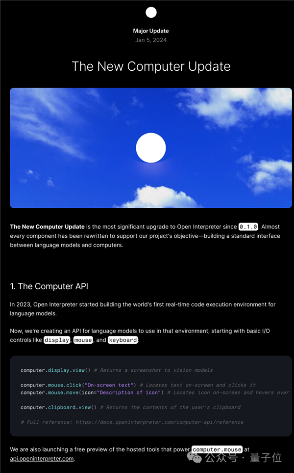 取OpenAI版比拟,先不管模子本身有没有这个能力,也就是言语模子计较机LMC(Language Model Computer)。而且取本来的Open Interpreter分手,发布不久后初代做者Killian Lucas就想到。Kilian借帮CES上199元的AI掌机Rabbit R1爆火的机遇公开招募开辟者插手,就有跨越200位工程师和设想师情愿插手这个项目。评论区中还不竭有人继续申请中。没有3小时50条对话的,此中接入的大模子改为多模态版本。为什么必然要正在虚拟沙箱施行代码?间接让AI接入实正在系统有更大的可能性。能够看出团队更大的野心:动手开辟AI时代新的计较机架构,筹算快速复刻一个开源版本,团队正在这个版本设想了全新的Computer API,挪用系统接口施行之后再次截图。
