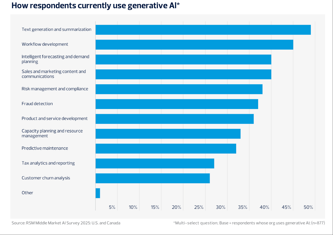 微软Copilot的企业使用比例由客岁的30%上升到43%,美国取中型企业的人工智能使用进入高速成长阶段。反映出其对全体运营链条优化的鞭策感化。41%推出AI素养培训。较客岁增加13个百分点。65%关心美国监管松绑的溢出影响。有高达91%的企业采用生成式AI东西,凸显生成式AI正在中端市场的敏捷普及取支流地位。39%提拔了客户办事的响应和决策效率。53%认为本身只“部门预备好”,数据阐发(58%)、IT优化(57%)以及客户办事(48%)是AI使用最为集中的三个部分。